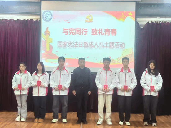 本次宪法日暨成人礼主题活动,将法治教育与成长仪式有机结合,不仅是一堂生动的思想政治课,更是一次深刻的人生观、价值观洗礼。它标志着同学们正式跨入成年公民行列,激励他们以宪法为指引,用火红的青春点燃梦想,在激情的岁月中放飞希望,努力成长为有理想、敢担当、能吃苦、肯奋斗的新时代好青年。(通讯员:刘瀚)
